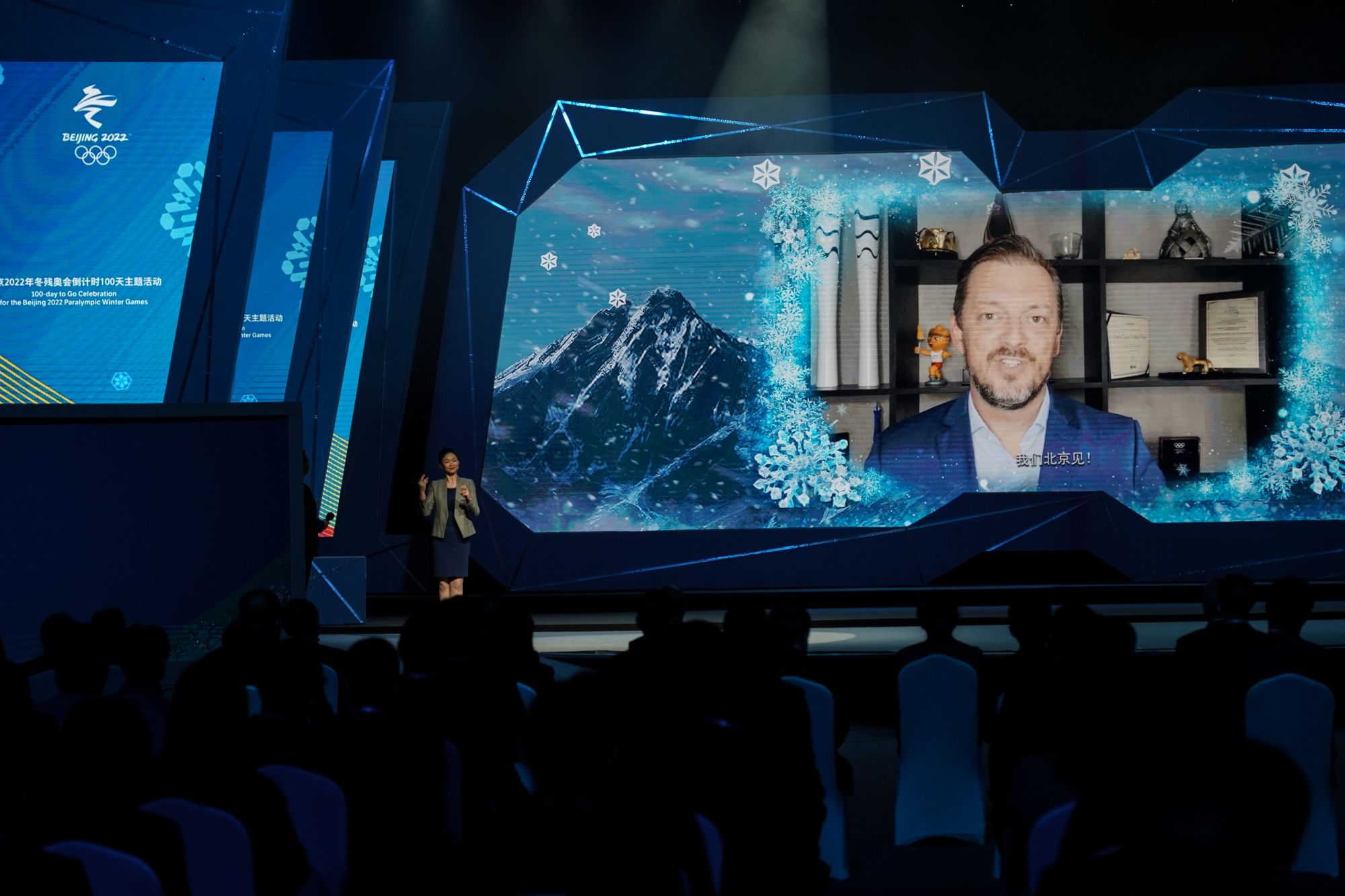11月24日,北京2022年冬残奥会倒计时100天主题活动中,国际残奥委会主席帕森斯通过视频致辞。新华社记者陈钟昊摄