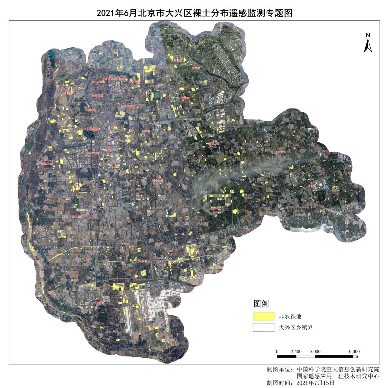 为了在发展过程中更好地管理辖区裸地,实现精细化管理,大兴区开始寻找科技助力,从2020年3月起,便联合中国科学院空天信息创新研究院全面启动了“地面裸土动态遥感监测”项目,对大兴区20个属地,1036平方公里实施监测。