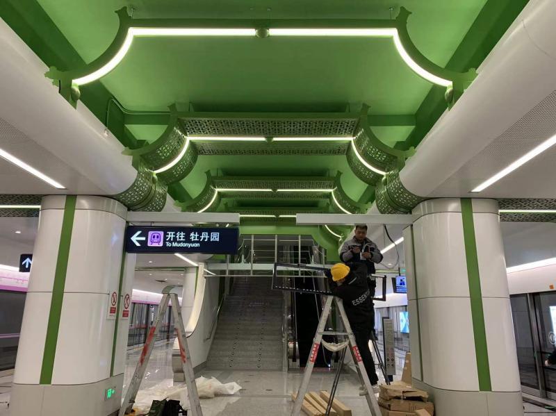 北京地铁19号线开通进入倒计时,12月29日,北京青年报记者在19号线新宫站看到,已经完成保洁的车站焕然一新。车内整体装修以白色为主,点缀着靓丽的绿色,给人简约时尚之感。车站内部以古建筑剪影为设计基础,吊顶使用铝扣板打造了微缩古建筑的造型,乘客来到车站仿佛进入一座古建筑中,可感受时空穿越之感。