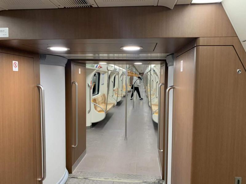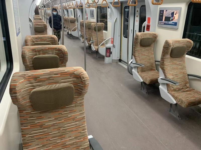 中铁四局北京地铁19号线一期工程09标项目经理李刚介绍,车内装修以建筑剪影为基础,采用了“半裸装”装修风格,最大程度地释放了建筑空间。