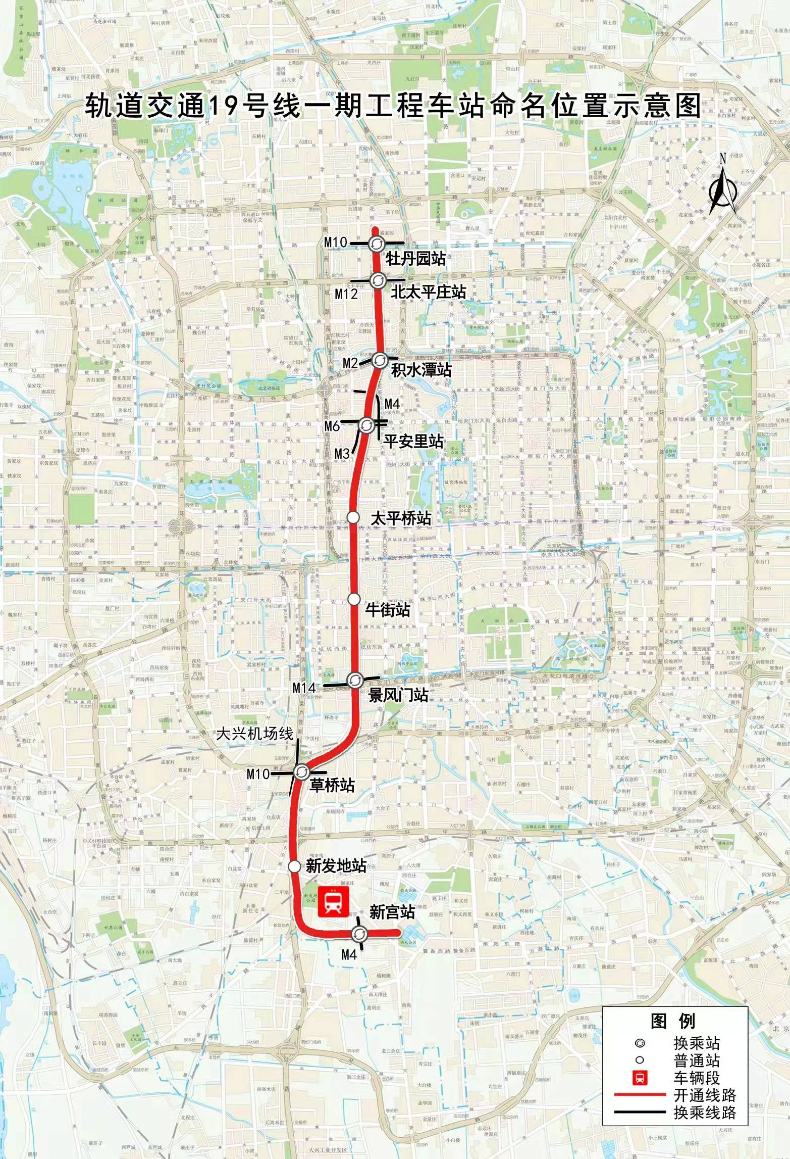 北京地铁19号线是一条穿越中心城西部的大运量南北向大站快线,线路南起丰台区新宫站,北至海淀区牡丹园站,线路并行古都中轴线西侧,贯穿草桥交通枢纽及金融街、牡丹园等商业核心区,可在草桥站换乘大兴机场线。全长22.4km,全部为地下线,设车站10座。