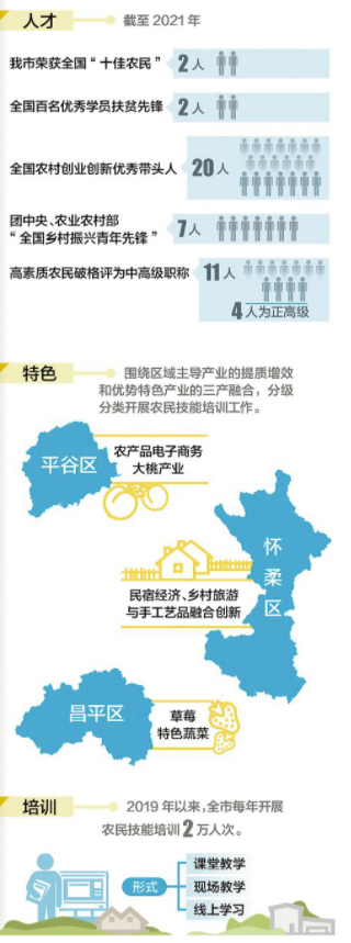 习近平总书记指出,“乡村振兴,人才是关键。”培训农民是培养乡村振兴人才的重要方式。近年来,北京市农业农村局不断改进农民培训工作,通过开展大范围座谈调研提升课程内容的精准性,提高培训对象的聚焦性,通过加大推广就地就近、不住宿、小班制、分时段为主的培训方式方便农民就地就近就便参训。培训工作从数量到质量、从管理到效果都取得了明显成效,深受农民欢迎和好评,逐渐形成了一支规模为6.1万人的有文化、懂技术、善经营、会管理的高素质现代化农民队伍。