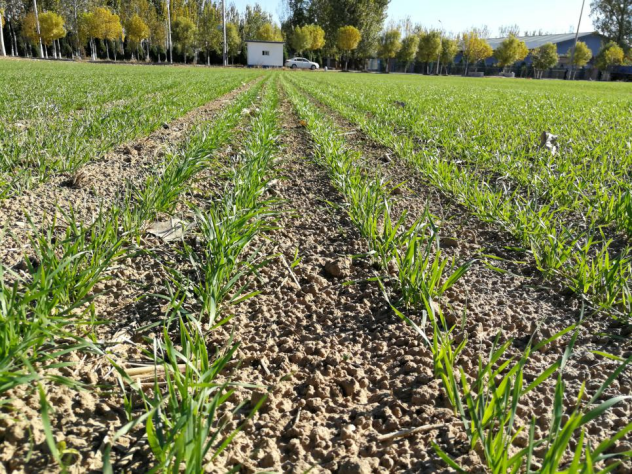 补墒保出苗:全市墒情监测点10月8日数据显示,未灌溉地块0~20cm、20~40cm土层平均相对含水量分别为56.5%和61.2%,环比分别下降了3.0和7.2个百分点,土壤墒情不足。面积较大,普遍浇底墒水时间比较紧张的地块,也可先播种后浇水,缩短出苗时间。技术要点:一是墒情较差、播后种子难以发芽的地块,应落实两次补水保全苗技术,即播后立即喷灌2小时,快速完成全田补水,保证种子吸水发芽,然后再进行第二次补水,仍喷灌2小时左右,帮助麦苗顺利出土。二是播种时土壤墒情能保证种子吸水发芽的地块,应在出苗前喷灌浇水2小时,补充土壤墒情,提高出苗率。