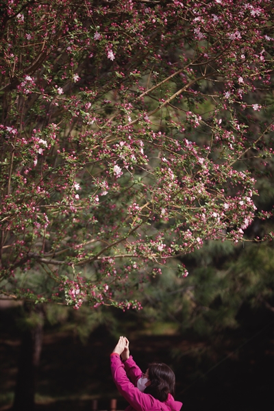 3月30日,陶然亭公园,游客在拍摄西府海棠。新京报记者 薛珺 摄