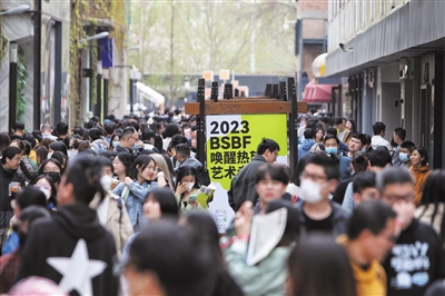 4月1日,郎园Vintage,北京图书市集春季场活动现场人流如潮。新京报记者 王嘉宁 摄
