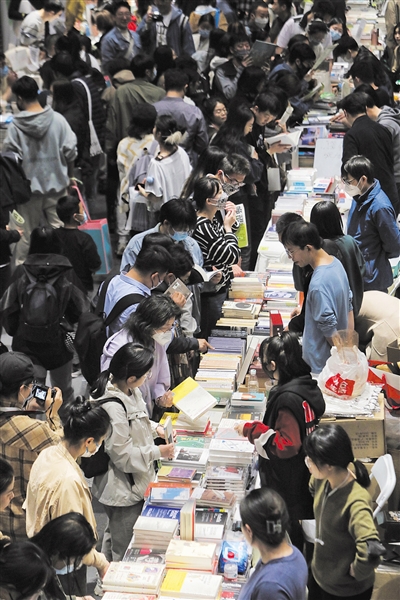 4月2日,读者在北京图书市集上挑选商品。新京报记者 王嘉宁 摄