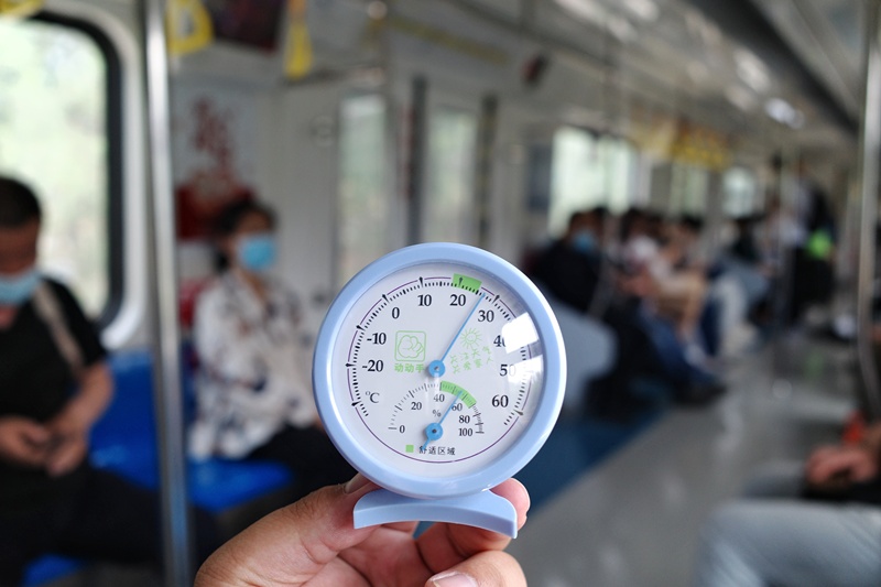 今天早高峰时段,记者还实地探访了6号线、2号线、1号线、5号线的空调温度情况。整体来看,车站及车厢内的温度比较适宜,能够维持在26摄氏度上下。由于记者所乘坐的区间均为地下段,体感温度的冷热变化主要受车厢内满载率的影响。