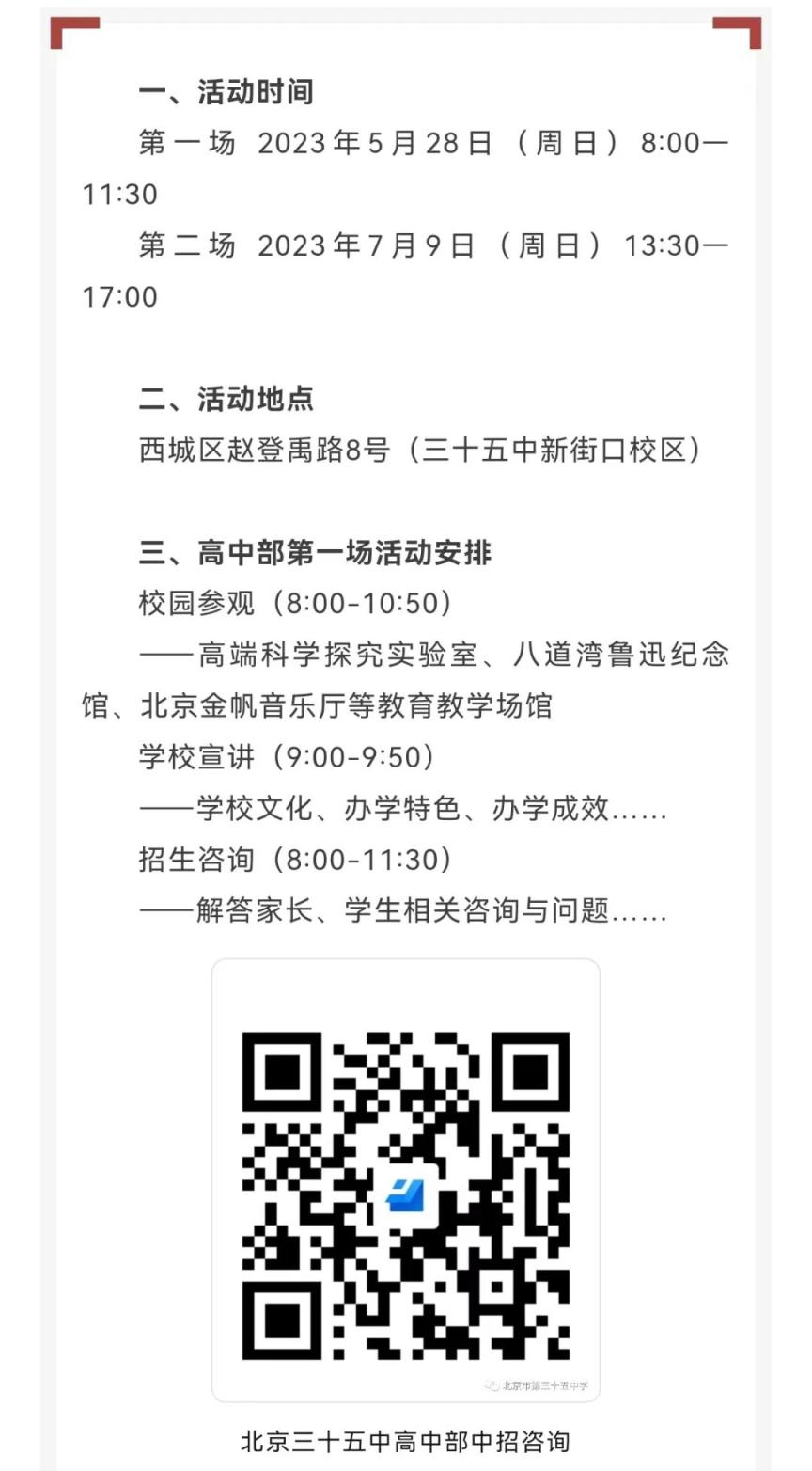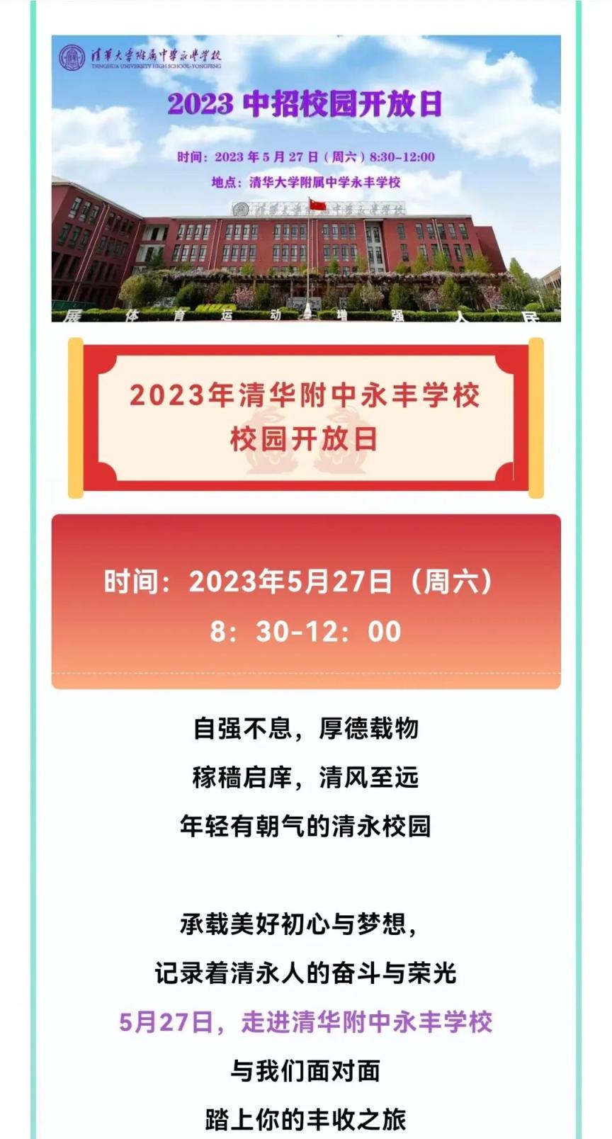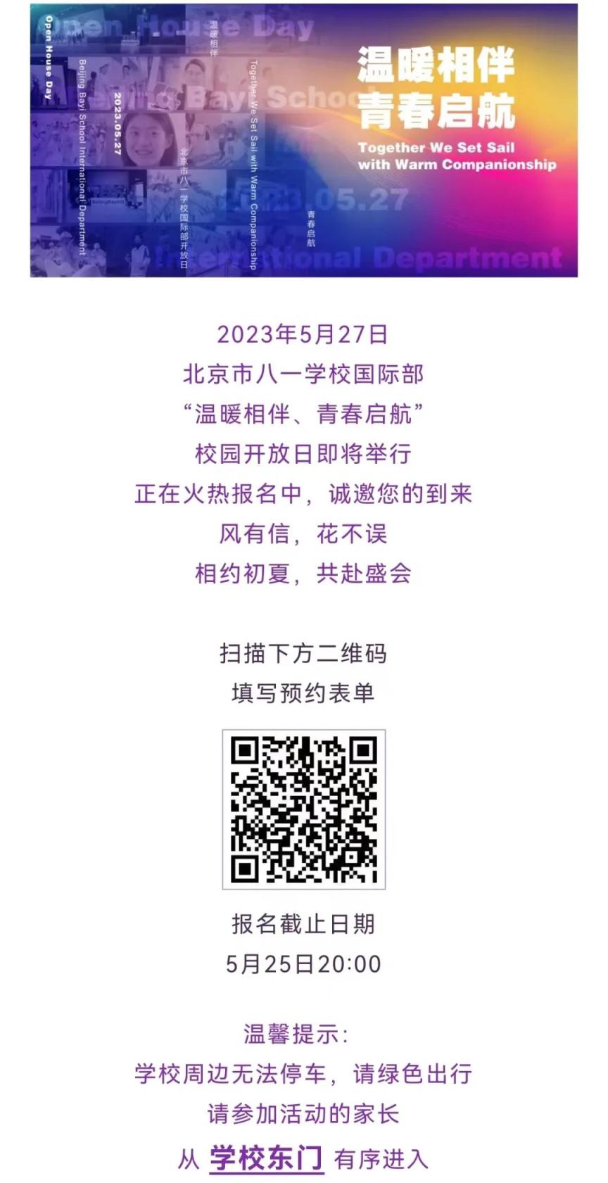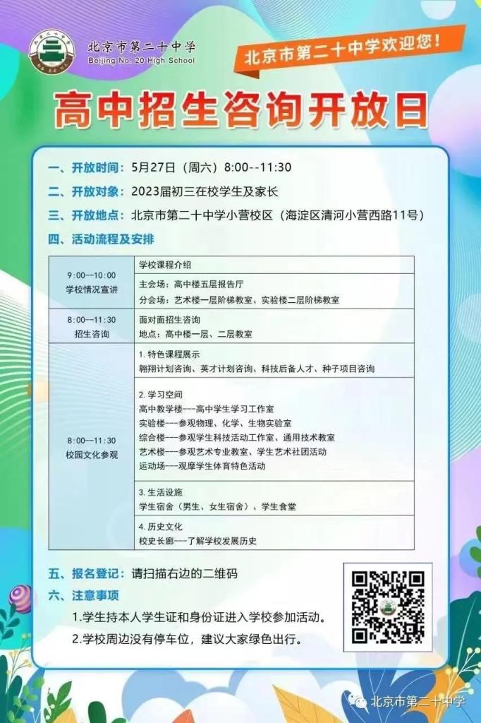 这个周末,北京工业大学、北京一零一中温泉校区、北京市第二十中学、清华大学附属中学永丰学校、北京市八一学校国际部等学校举办线下校园开放日活动!快来预约吧~