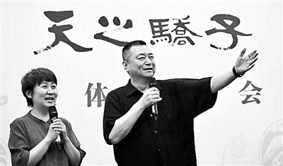 导演唐烨与饰演曹操的王刚。摄影/本报记者 王晓溪