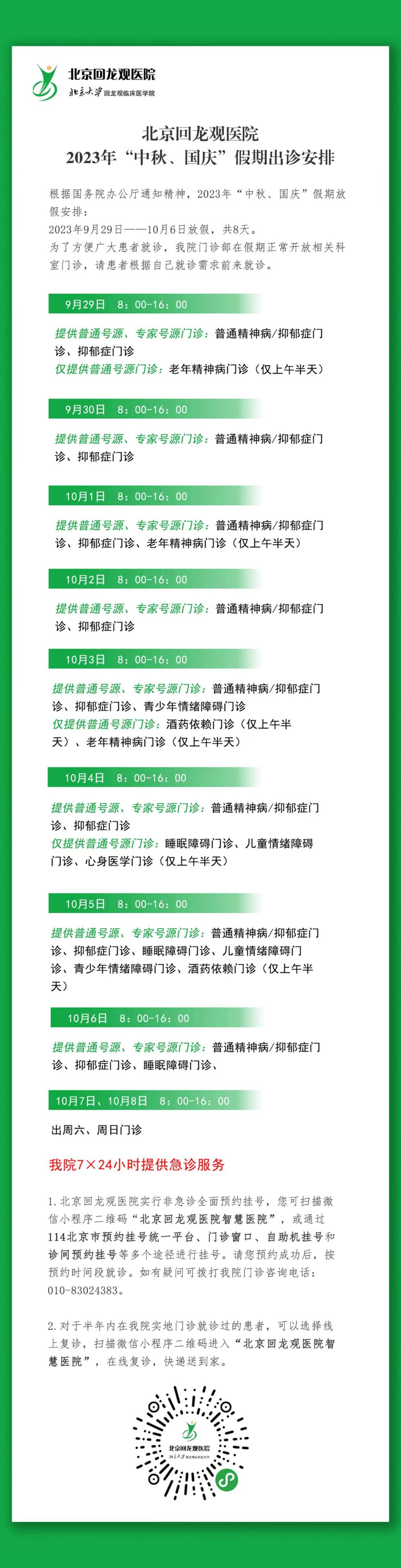 9月29日-10月6日(10月1日除外)全日普通门诊,出节假日专家门诊;
