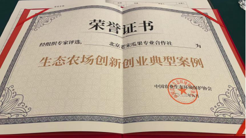 北京老宋瓜果专业合作社坚持“投入品减量化、废弃物资源化、生产生态化”发展理念,通过优质有机肥土壤改良、绿肥作物倒茬轮作、全生物可降解地膜、瓜秧原位还田等多项生态技术的综合应用,形成了“资源—产品—废弃物—再利用”的低碳发展模式,园区西瓜取得有机产品认证,并蝉联13届“中国西甜瓜擂台赛”瓜王冠军,成为京郊大地瓜果生态农场的靓丽名片。