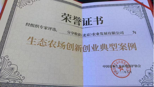 分享收获(北京)农业发展有限公司全程采用绿肥培土、物理防虫控草、功能植物群落改善生态环境、农作物废弃产品循环利用等生态技术生产,产品获得了有机食品认证。在提供优质产品的同时,该农场还引入社区支持农业的CSA模式,通过“农场+”的方式,传播自然和谐、健康饮食、产销互信的生态理念,建立消费者与生产者共同环保链条。