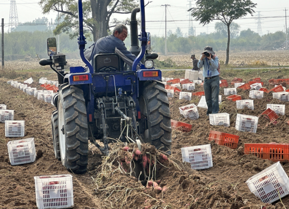 眼下正是红薯成熟的季节,在北京市延庆区沈家营镇北京西王化营种植专业合作社的甘薯地里,挖薯机在不停地穿梭,一排排体态饱满的甘薯铺满田间地头,景象甚是喜人。