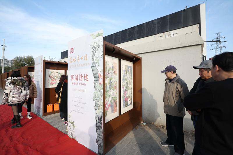 2023年11月7日,为期一个月的朝阳区流动美术馆进商圈暨“家国情槐”著名画家荆贵家书画作品展在燕莎奥特莱斯购物中心广场揭幕。 新京报记者 王飞 摄