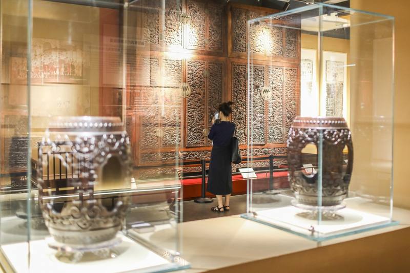 2023年6月29日,金隅龙顺成文化创意园区,嘉宾参观龙顺成非遗博物馆。 新京报记者 浦峰 摄