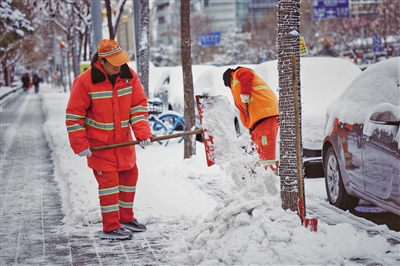 为应对雪情,北京市城管执法局连夜部署城管执法系统,对“门前三包”及社会单位进行宣传告知。截至21日16时,全市城管执法系统发动社区、物业5100余个,参与扫雪铲冰群众达到5.5万余人。