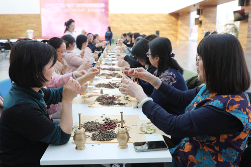 “捏着手背皮肤5秒以上,然后放松,留意皮肤回复平坦状态的时间,这是一个判断生理年龄的简单方法……”营养学专家生动的健康讲座,为女委员们积极面对衰老,创造美好生活提供了有益的启发。活动现场,除了参观介绍、专家讲座,还安排了草本香囊制作、草本拓印等传统手工体验项目。