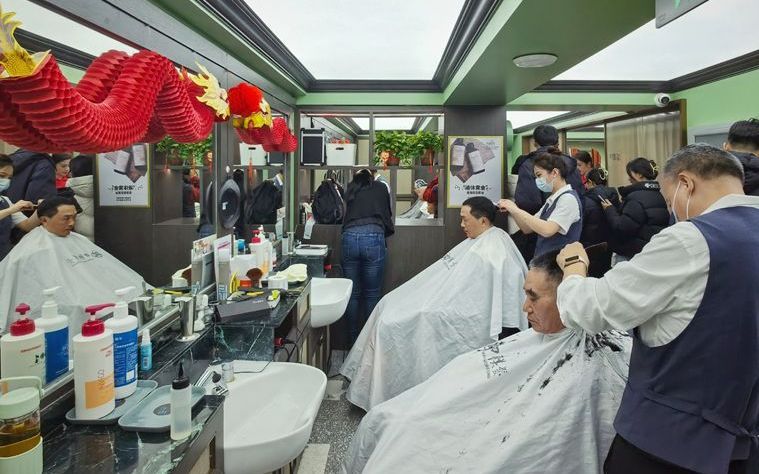 3月11日,四联美发王府井店一大早就顾客盈门。二月二,龙抬头,不少市民都选择在这天理发。新京报记者 薛珺 摄