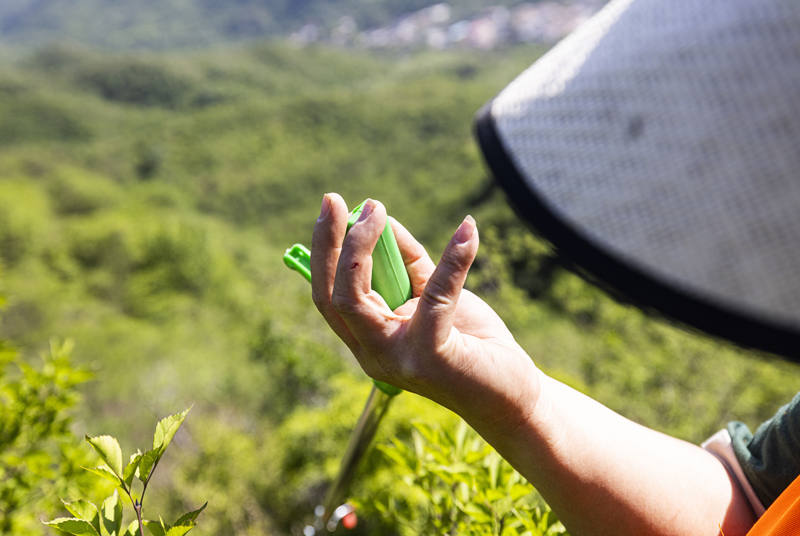 5月17日,上山巡护需要爬小路,梅兰芬经常被灌木划伤。