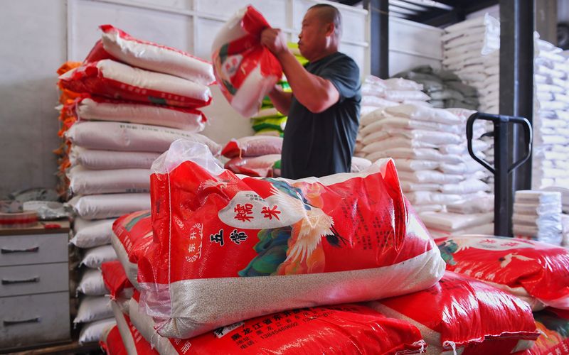 商户正在搬运糯米。新京报记者 陈琳 摄