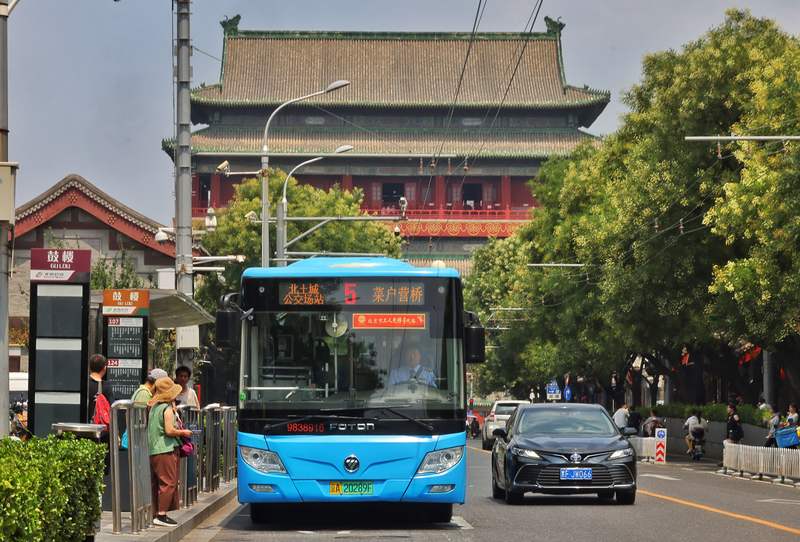5路公交车途经前门、景山、什刹海、鼓楼等著名景点,其行驶线路几乎与北京中轴线重合,被形象地称为“龙脊线路”。新京报记者 王贵彬 摄