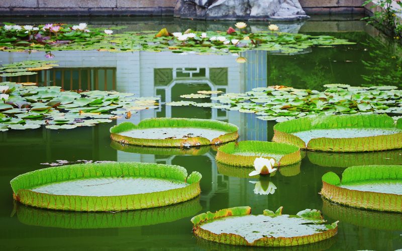 8月9日,国家植物园(北园),盛开的王莲和睡莲。新京报记者 薛珺 摄