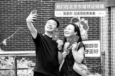 东城区婚姻登记事务中心主任王涛介绍,为应对七夕婚登高峰,东城区婚登中心特意将办公时间提前,并准备了丰富的活动和服务举措,在确保每一对新人顺利完成登记的同时,向新人们宣传婚俗文化改革新风。