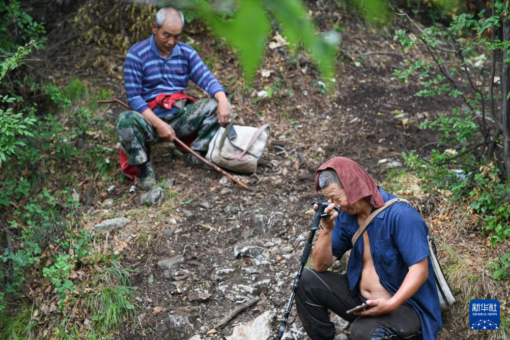 工人在前往箭扣长城考古工地的途中休息(7月2日摄)。