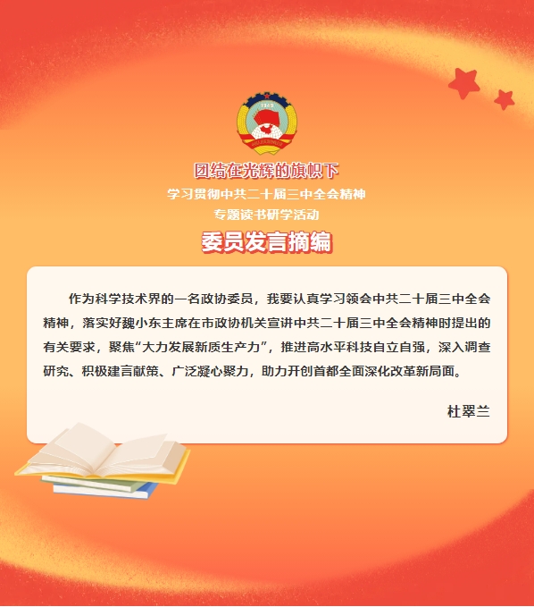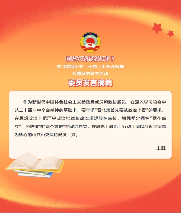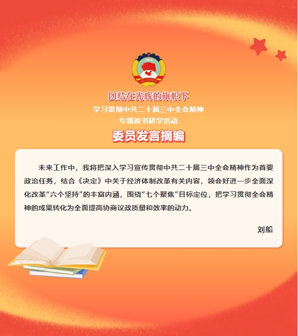 来源标题:团结在光辉的旗帜下|学习贯彻中共二十届三中全会精神专题读书研学活动委员发言摘编(一)