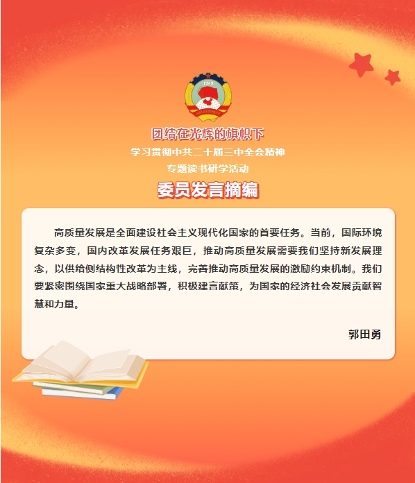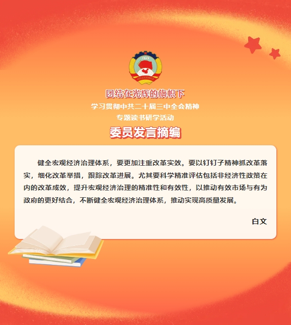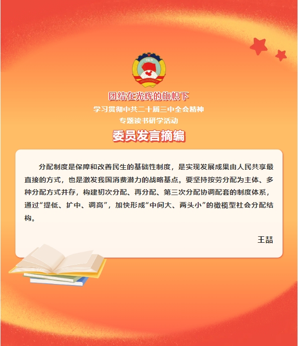 来源标题:团结在光辉的旗帜下|学习贯彻中共二十届三中全会精神专题读书研学活动委员发言摘编(二)