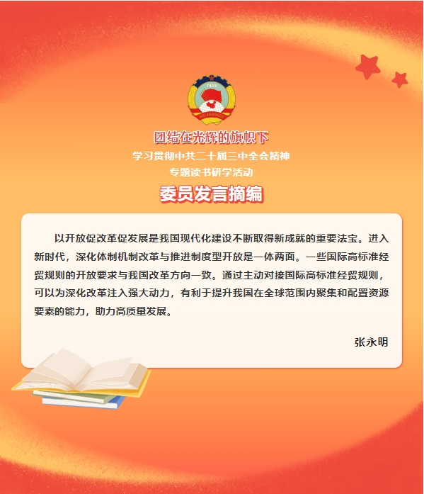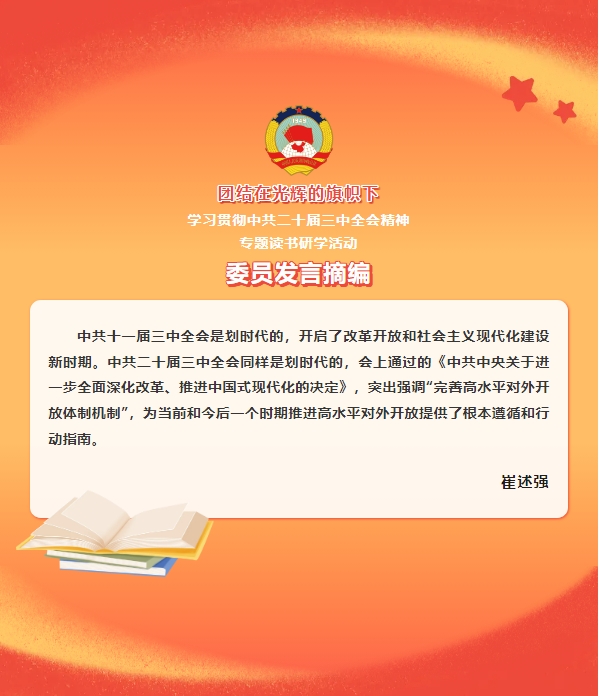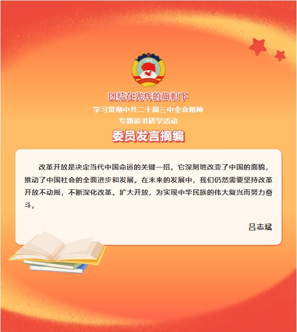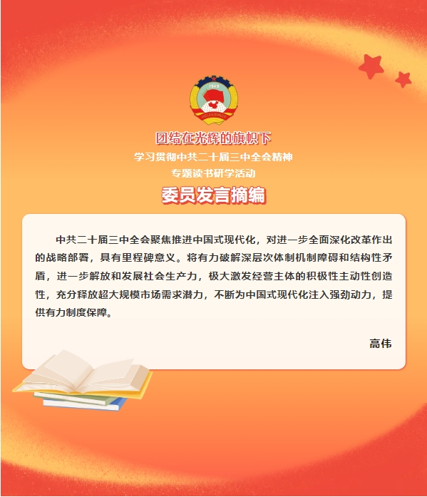 来源标题:团结在光辉的旗帜下|学习贯彻中共二十届三中全会精神专题读书研学活动委员发言摘编(五)
