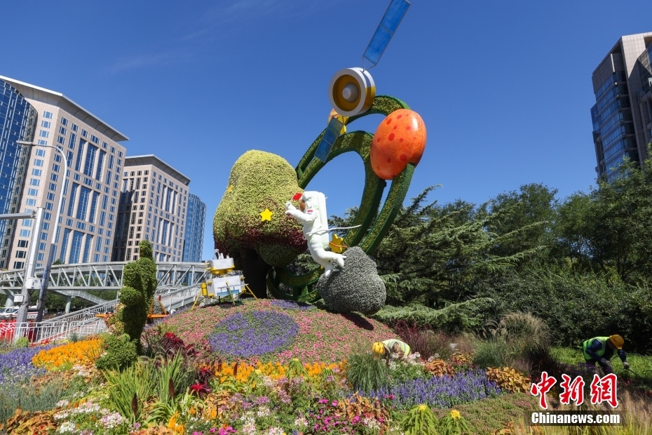 为了迎接国庆节的到来,北京长安街沿线各主题花坛正在有序搭建。中新社记者 贾天勇 摄