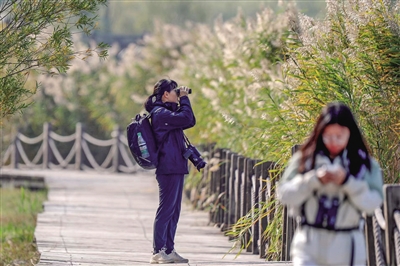 观鸟爱好者在野鸭湖观鸟。北京市园林绿化局供图