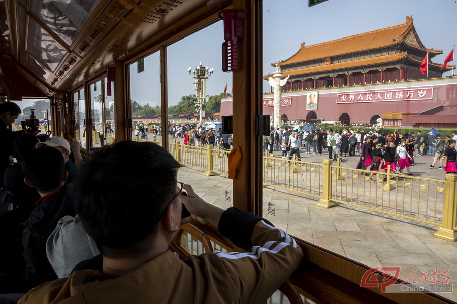 2024年10月12日,在“高质量发展调研行”北京主题采访活动中,本刊记者乘坐铛铛车,畅行“北京中轴线”,感受京味古韵。