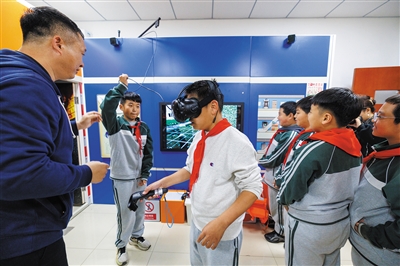 10月30日,妙峰山民族学校,同学们通过VR眼镜学习防灾知识。摄影/新京报记者 王子诚