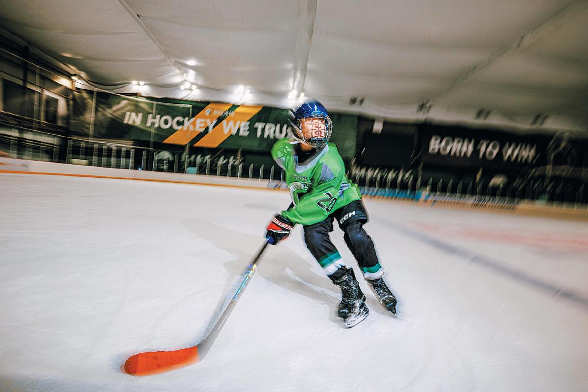 现在12岁的吴博霖回忆起那次初体验,最深刻的就是“害怕,怕摔跤!”不过,酷炫的冰球装备把吴博霖又“拉”了回来。购置齐了全套装备,吴博霖再次站上冰面。这一次,他惊奇地发现,摔跤没有那么疼了。