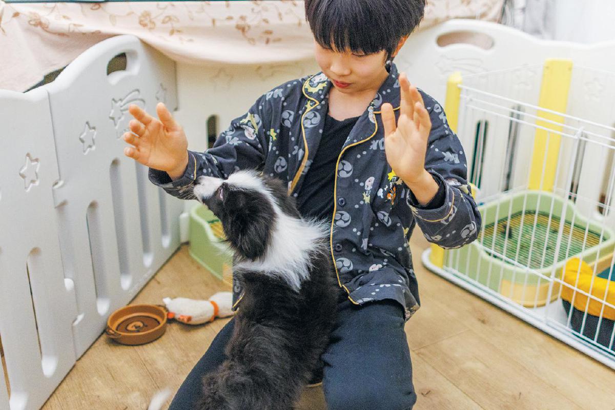 2024年12月26日,吴博霖与自己养的边牧玩耍。