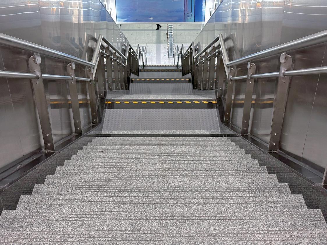 部分车站对台阶进行改造防滑槽、边缘经过磨砂处理