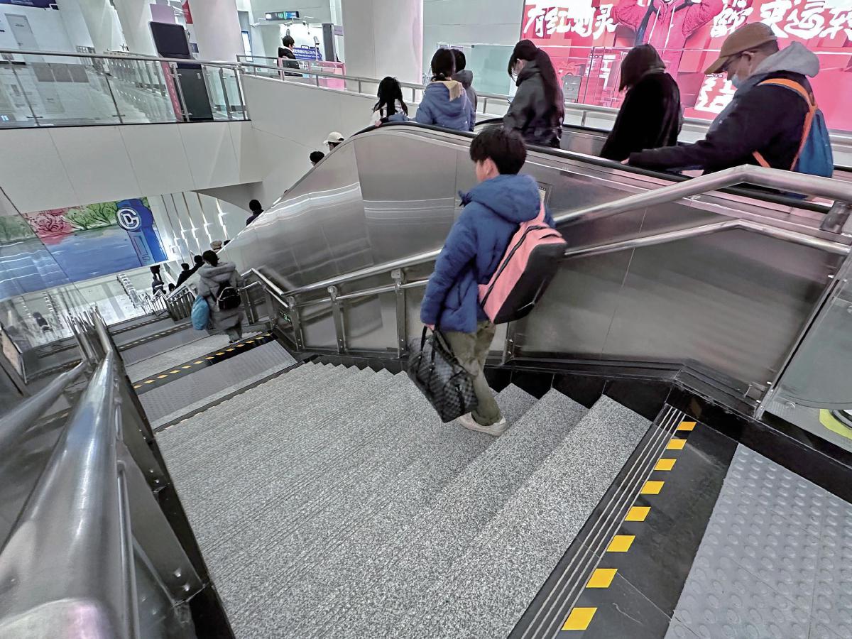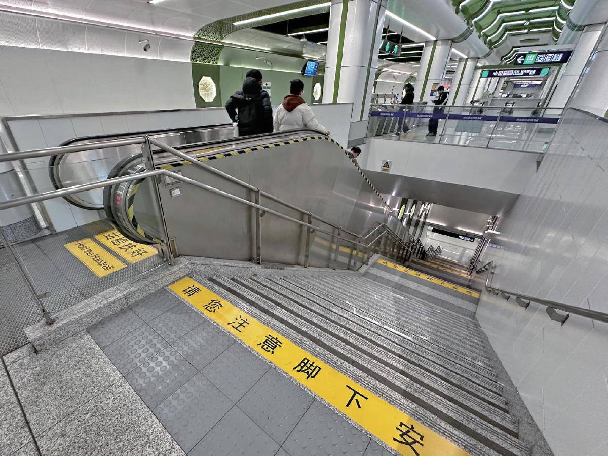 还有一些地铁站为了更好地保障乘客通行安全,在客流量较大的换乘通道内还对台阶进行了更彻底的安全改造。