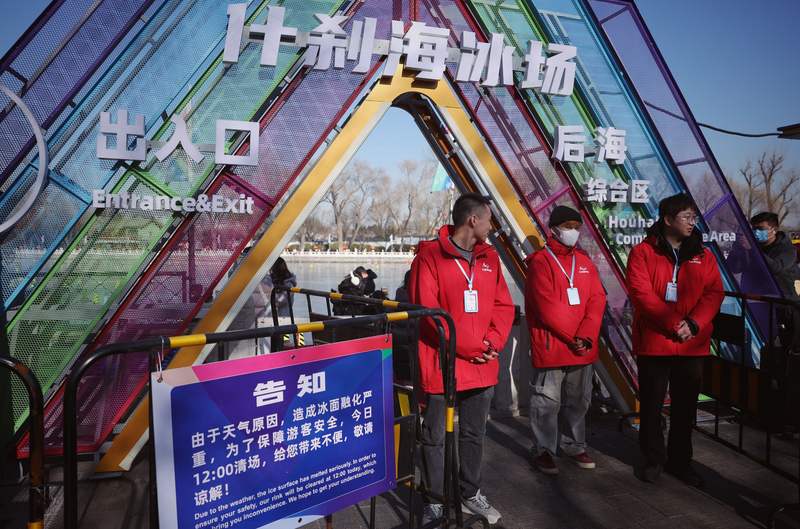 记者了解到,什刹海冰场今天早上开业,不过由于天气升温,今日中午12点停止售票。从明天起,什刹海冰场营业时间暂调至早8点至中午12点,并视天气情况调整。
