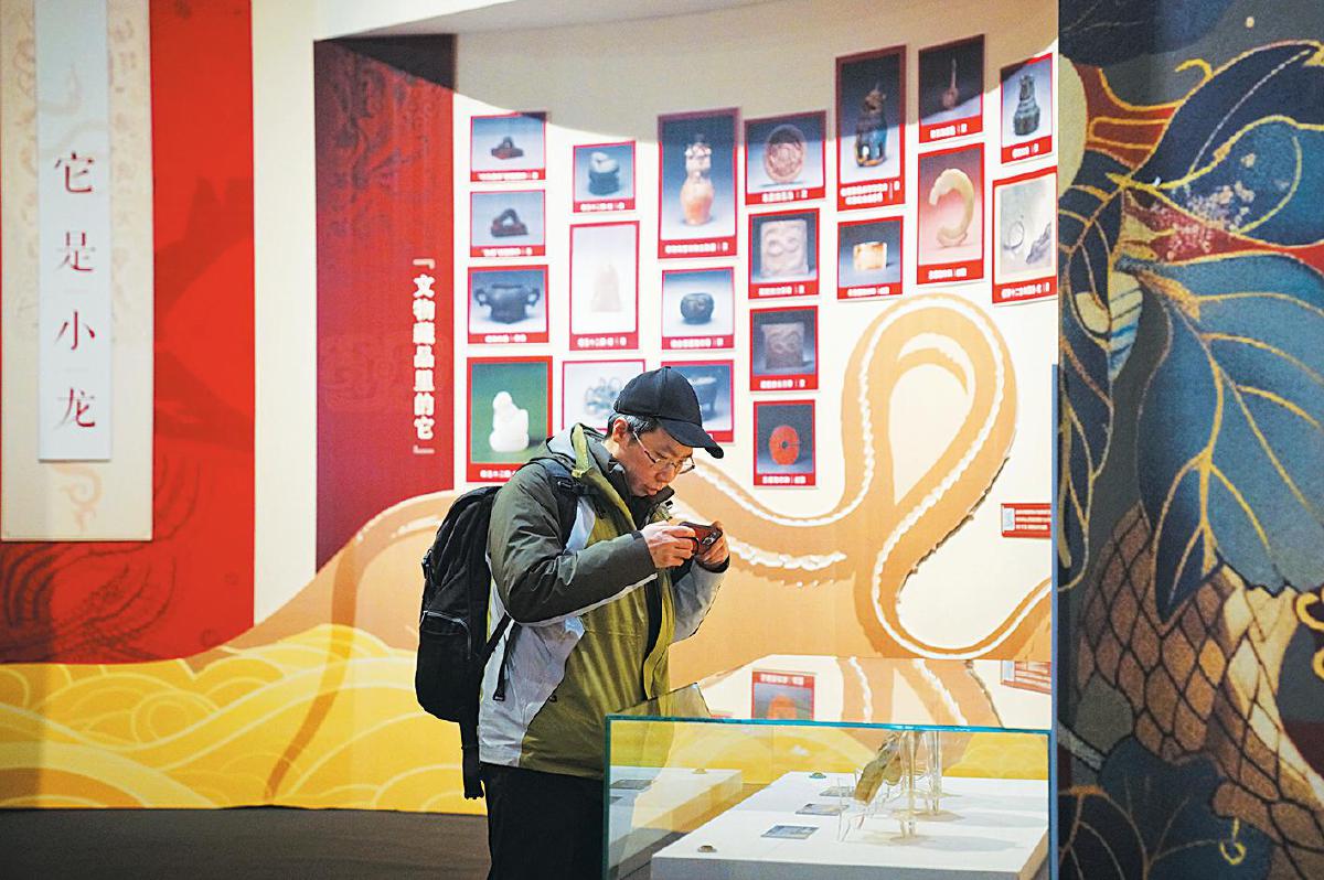 1月23日,中国园林博物馆,“它们·巳蛇”展,一位观众在参观。 新京报记者 薛珺 摄