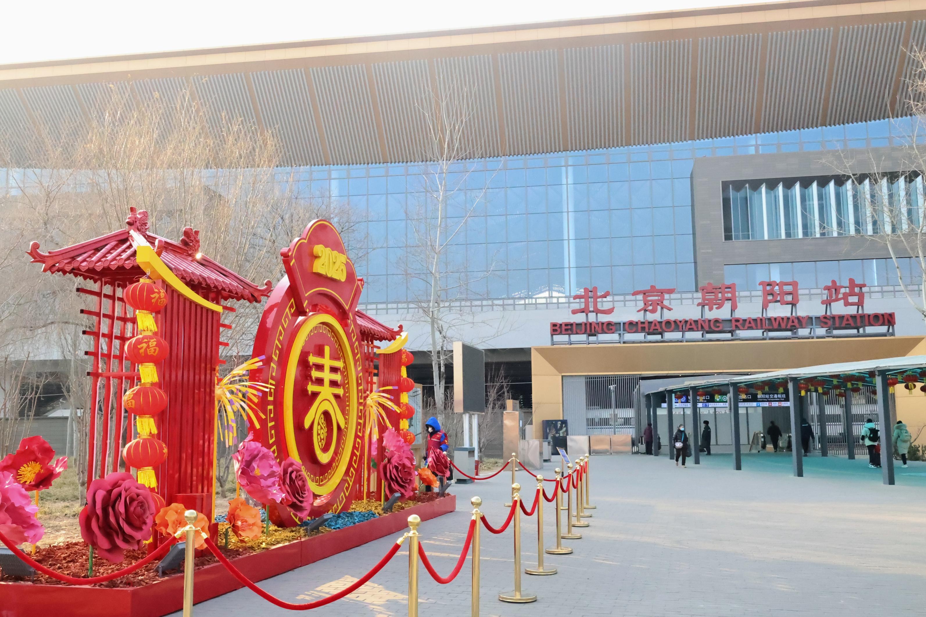 朝阳站地区的设计主题是“星光闪烁”,用闪耀的灯饰照亮美丽的牌楼,寓意着回家团圆的美好。丰台站地区的设计主题是“五谷丰登”,通过“春”字、“福”字、五谷礼盒等的有机组合,寓意春回大地百花香,以及盛世丰台百姓安居乐业。