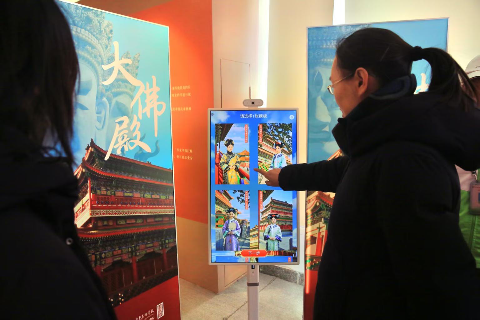 此外,阐福寺大佛殿数字复原展利用三维建模技术还原历史,游客可体验AI拍照互动,双虹榭御绣缘文创店推出的春节福字窗花文创商品也备受游客喜爱。