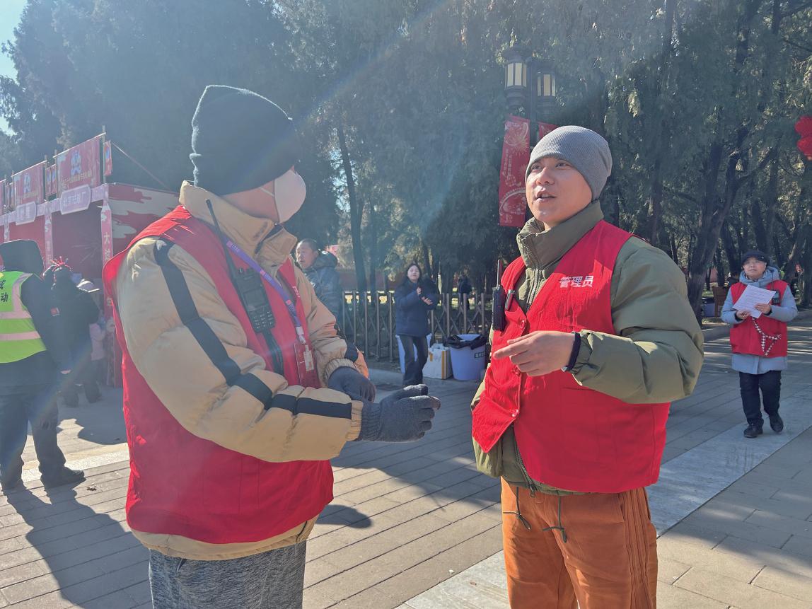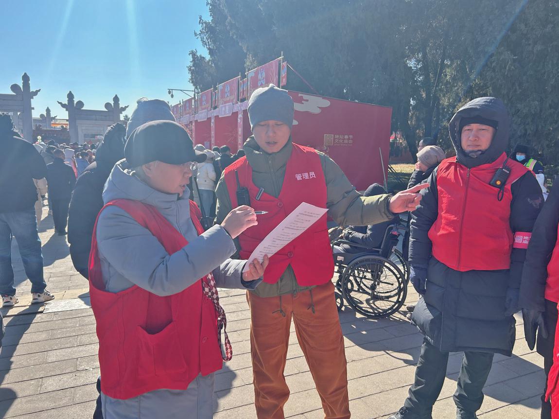 “其实我的岗位更多的是机动。”徐伯珣说,比如,帮助游客指路、寻人,带领医疗人员快速找到受伤的游客,劝阻游商,游客之间发生冲突进行调解,发现小隐患及时制止等,庙会上穿着“地坛庙会管理员”红马甲的工作人员,人人都身兼多职。