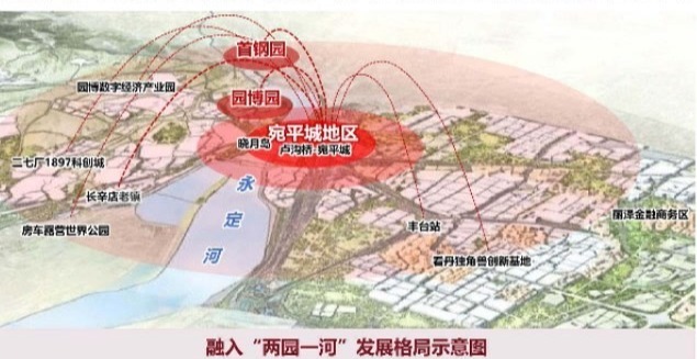 其中,宛平城地区将打造永定河活力水岸,融入“两园一河”发展格局。具体来说,将结合卢沟桥-宛平城、晓月岛等资源塑造高品质岸线景观,激活周边产业功能与城市活力,联动首钢园、园博园等永定河沿岸地区共同打造世界级水岸经济带。将以河为脉,打通东西贯通、南北渗透的绿廊,构建层次丰富的公园体系,建设高品质滨河绿道及滨河休闲空间。
