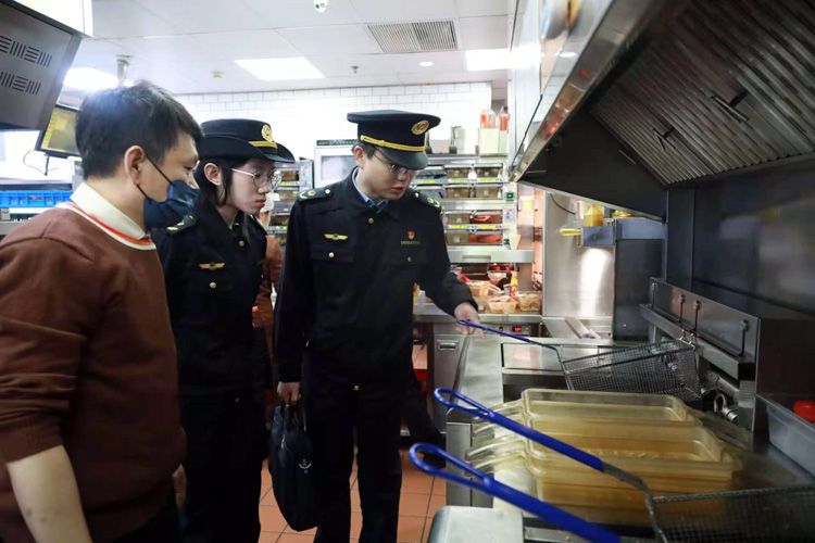海淀区市场监管局执法人员检查八一学校周边餐饮店和便利店,对后厨各加工操作间进行了全面检查。