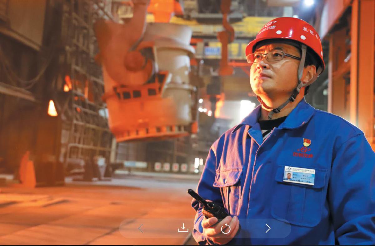 首钢京唐公司炼钢作业部炼钢作业区炼钢工、转炉炼钢工高级技师郭佳宁。 本版图片/首钢京唐钢铁联合有限责任公司供图