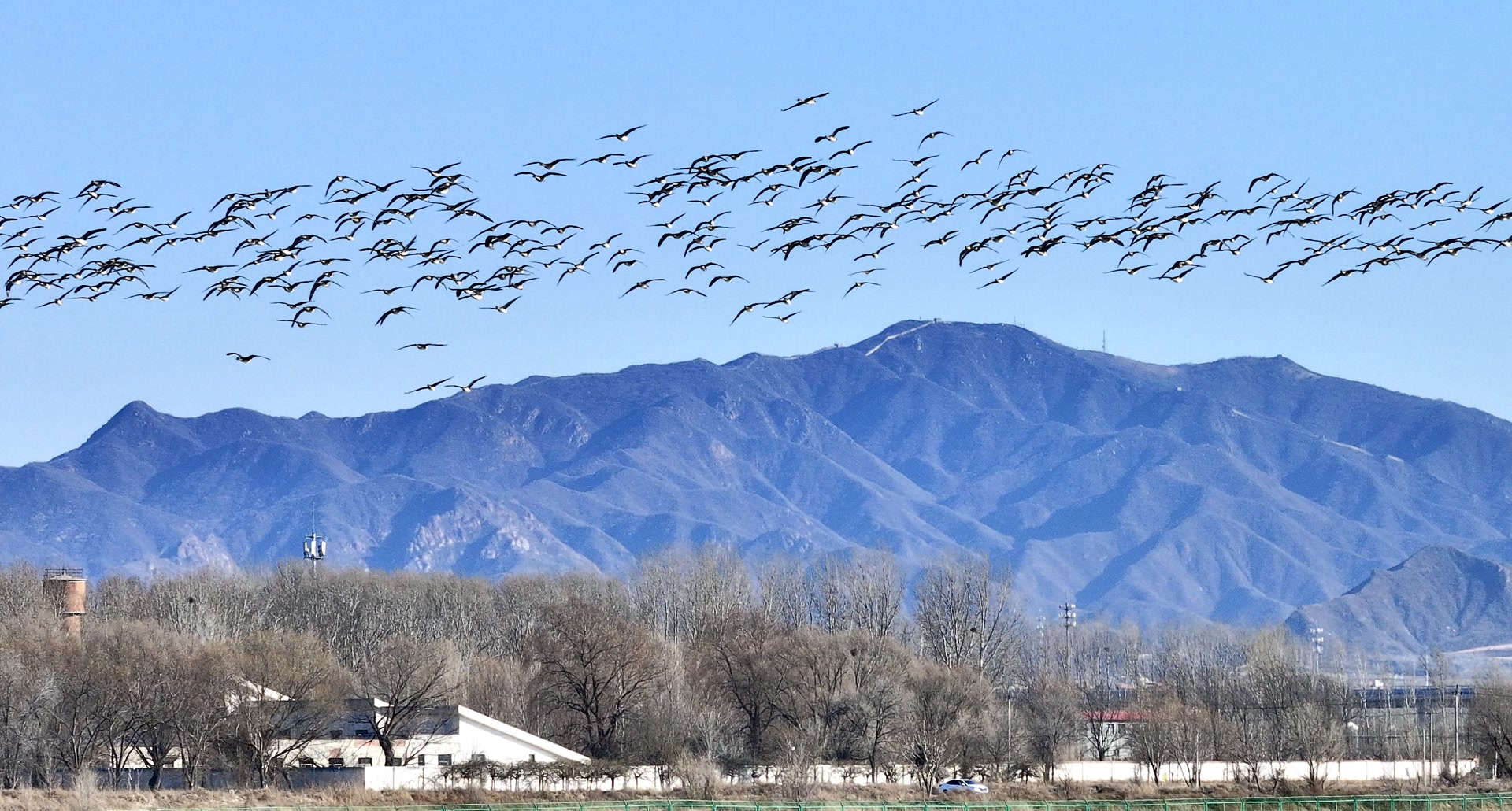 来源标题:大雁飞回北京啦!春来雁归,翱翔在冬雪残冰与蓝天碧水间