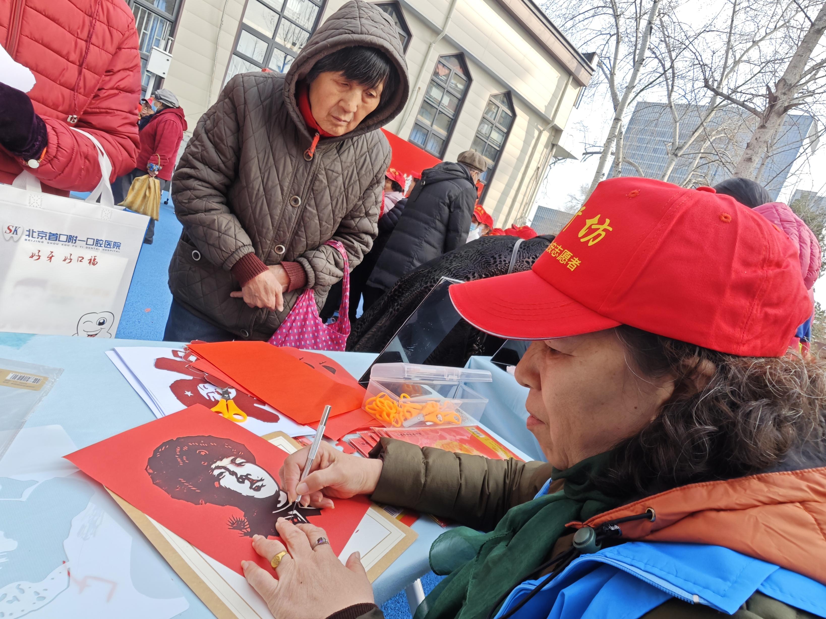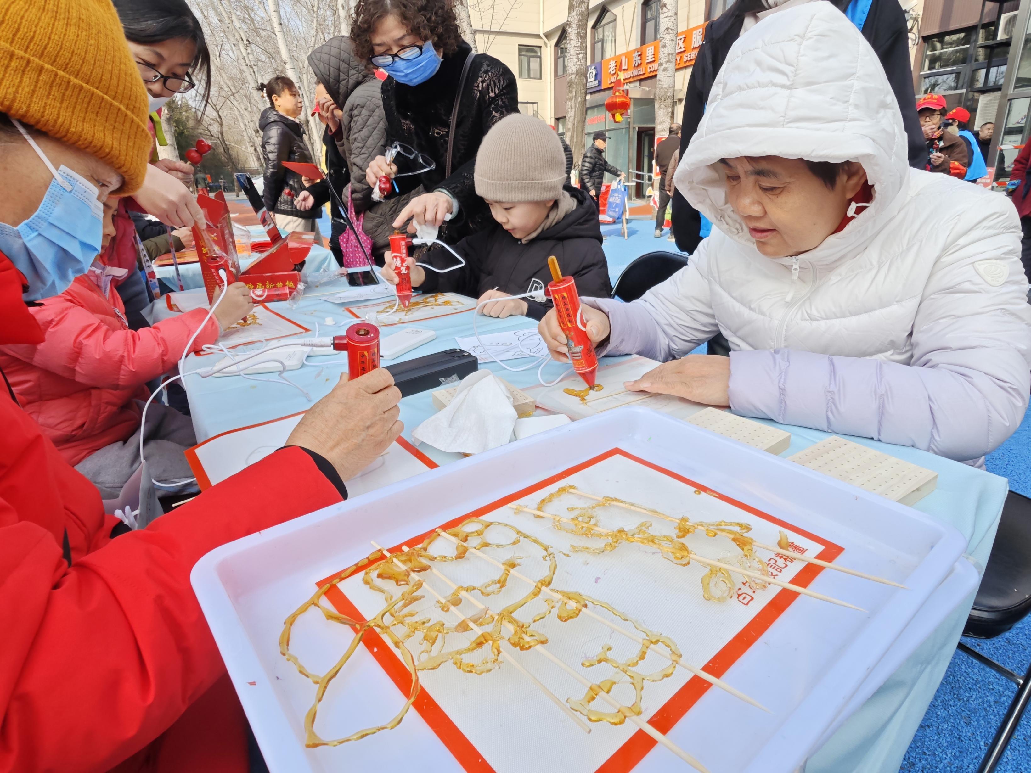 除了便民服务,还开设了编织、趣味剪纸,糖画制作等活动供居民体验。