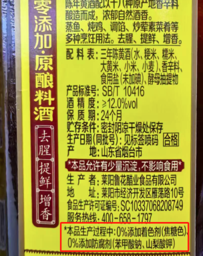 鲁花一款原酿料酒,是指“生产过程中,0%添加着色剂(焦糖色)、防腐剂(苯甲酸钠、山梨酸钾)”。